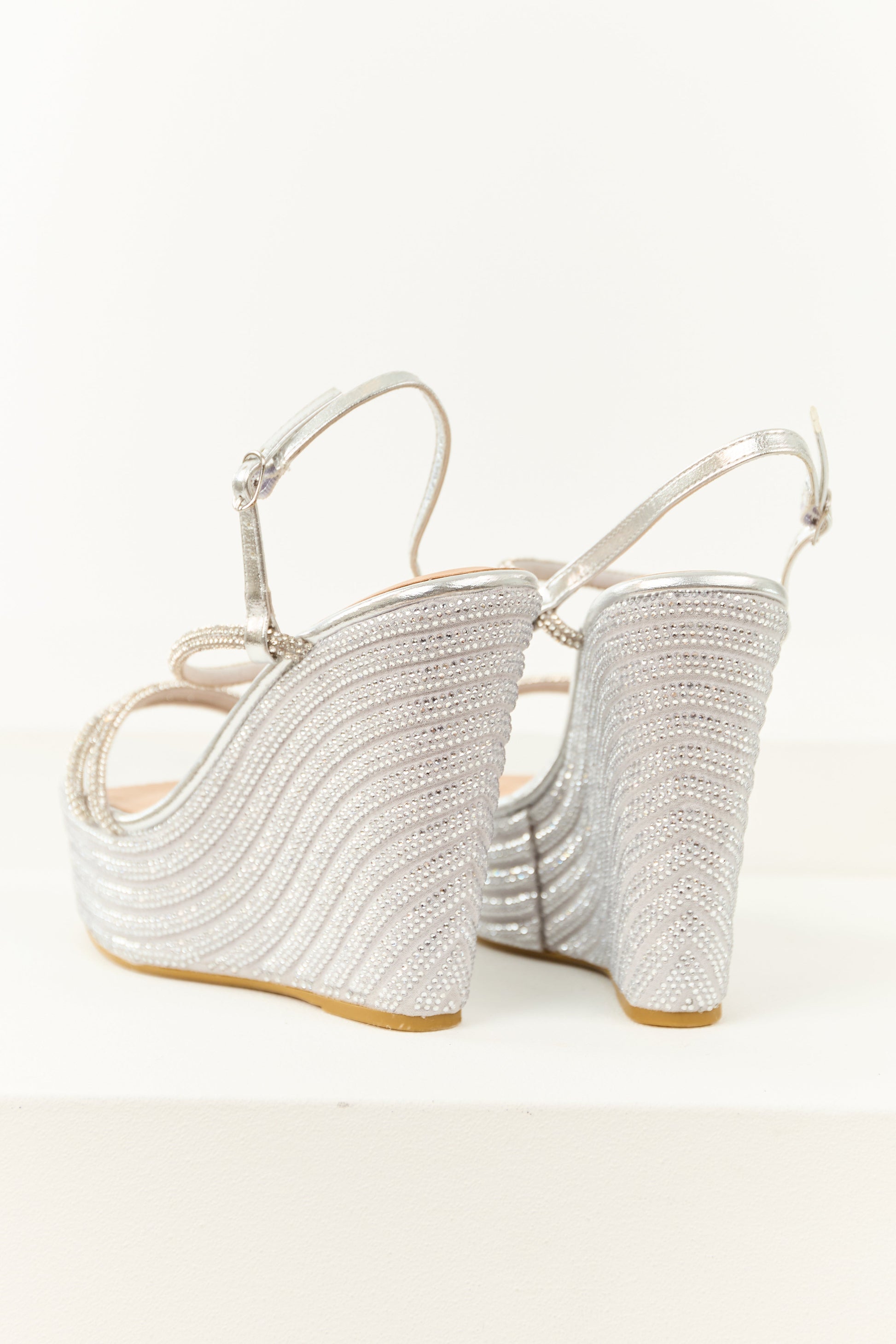 - Shine from the ground up — these silver rhinestone wedges bring sparkle to every step!