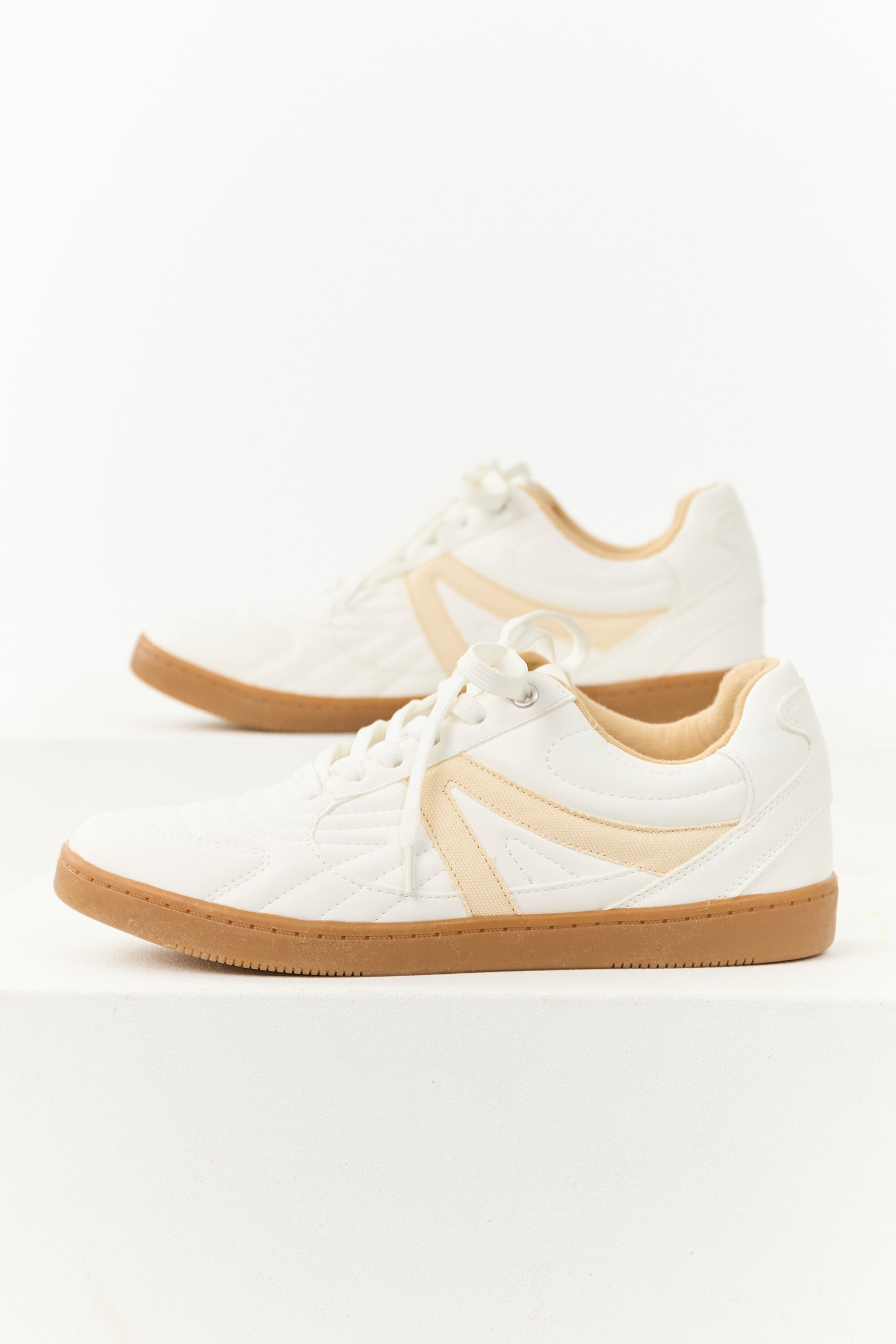 White Faux Leather Lace Up Low Top Sneakers